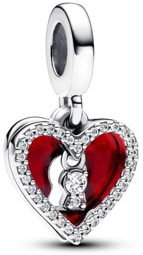 Pandora ékszer Piros szív és kulcslyuk dupla függő ezüst charm 793119C01