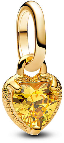 14 karátos arannyal futtatott, szív alakú mini charm sárga cirkóniával díszítve.  Elegáns és letisztult ékszerkiegészítő, amely a szívverést szimbolizálja. Tökéletes lehet ajándéknak vagy saját kollekció kiegészítésére.