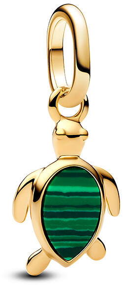 Aranyos és részletgazdag darab a Pandora Moments kollekcióból. A kis tengeri teknőst ábrázoló mini charm,  ragyogó zöld kristállyal díszített páncéljával, apró mérete ellenére gyönyörűen kidolgozott, és tökéletesen visszaadja a teknős finom, barátságos karakterét. A teknős szimbolikusan a kitartást, bölcsességet és hosszú életet jelképezi.